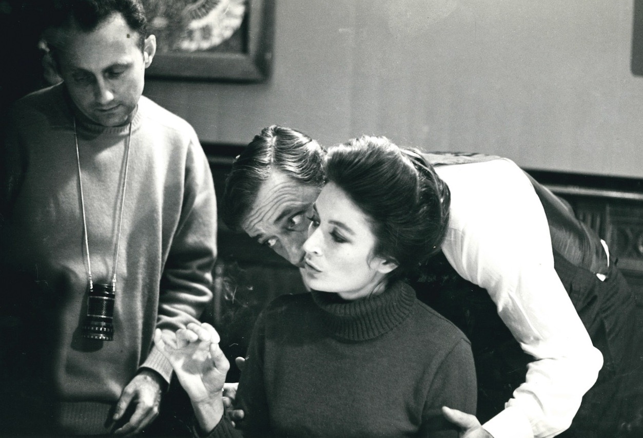 In the film, a conflict is being played out between Mathias (Yves Montand), a Flemish linguist and literature professor, and a theatrical stage designer named Anne (Anouk Aimée) who left France to live with him in Belgium and feels both excluded and scorned by the Flemish members of Mathias’s circle. In the film’s opening scene – after see-through credits launch Delvaux’s first color feature with what looks like a black and white snowy landscape seen from a moving train over a plaintive song about the seasons sung by a woman vocalist (with lyrics by Delvaux) – Mathias is visiting his French-speaking grandmother, who recalls him refusing to go to a cinema with her at the age of ten because he felt ashamed of her, a memory that Mathias diffidently denies and shrugs off (“Mais non!”), suggesting another half-hidden sign of the same syndrome.