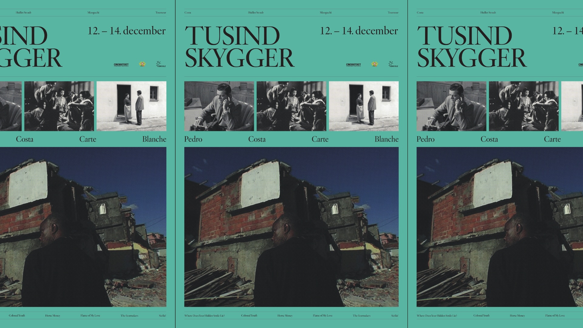 From 12 to 14 December, the Danish film initiative Tusind Sole, in collaboration with the Danish Film Institute and the Portuguese Embassy, will present the film programme Tusind skygger [A Thousand Shadows], centred on Portuguese filmmaker Pedro Costa. The weekend will feature conversations with Costa, rare film prints, music, and a bar. For the occasion, Costa has selected three of his own films alongside three works that have inspired him.