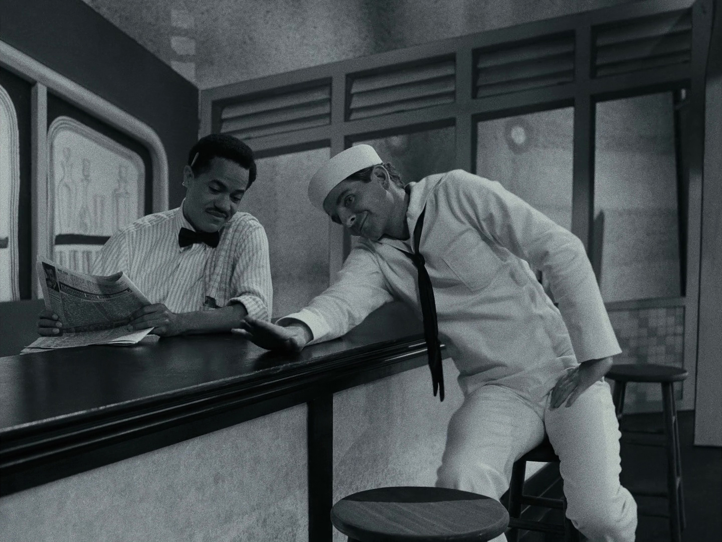 Aan het begin van de film, in een gesprek met Serge Koussevitzky en Aaron Copland waarin Bernsteins “tijdverlies” in Hollywood ter sprake komt, fluistert Montealegre hem toe dat zij zijn musicalwerk wil zien, wat juist door zijn collega’s wordt misprezen. Ze maakt aanstalten om te vertrekken, maar Bernstein kijkt haar verbaasd aan. “We can’t just leave.” – “Oh yes, we can,” werpt Montealegre tegen. Op de tonen van Bernsteins Fancy Free: Enter Three Sailors sleurt ze Bernstein van de lunch in Massachusetts rechtstreeks het podium van Broadway in New York op. De camera zweeft boven hen terwijl ze moeiteloos van de ene naar de andere ruimte rennen. In het theater kijken ze naar de opvoering van Fancy Free (1944), een dansstuk over drie matrozen die aan wal gaan in New York, gecomponeerd door Bernstein. Als in een droom bewegen Leonard en Felicia door de ruimtes heen, als getuigen van scènes die zich uitsluitend voor hun ogen voltrekken, zoals de drie matrozen die exclusief voor hen dansen. Dit noopt Felicia tot een vraag: waarom zou hij de musical de rug toekeren? Een gesprek dat zich, in tegenstelling tot de minutieuze realistische claim van andere aspecten van de film, niet werkelijk daar afspeelt, maar als in een utopische droom in een onmogelijke werkelijkheid. Coopers professionele psychose komt in deze scène het best tot zijn recht: de illusie toont zich als illusie, de manie krijgt een lyrische energie, voortgestuwd door Bernsteins muziek. Het personage van Bernstein lijkt het zelf niet te kunnen geloven. Dan wordt, dankzij een filmische ingreep van de montage, de oversteek totaal: Bernstein wordt een van de matrozen en danst voor Felicia. Het is een zeldzaam moment waarin Bernsteins en Coopers manie even lijken samen te vallen.